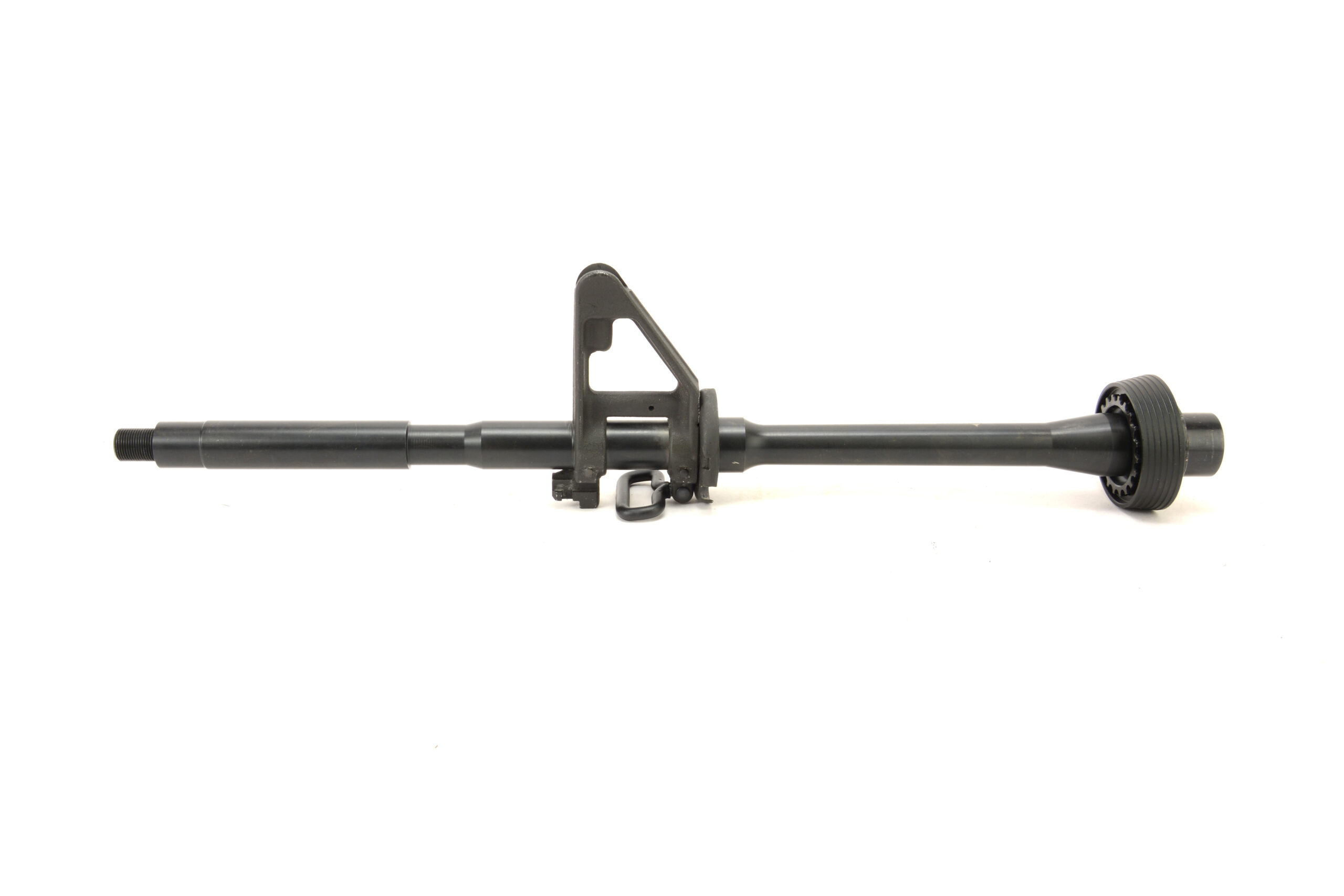 This BKF 5.56 chambered 16 inch Government Profile Barrel is machined from Chrome Lined Phosphate 4150 Barrel with M4 feed ramp extension. This barrel includes the front sight base (NON F-Marked) , ROUND M4 handguard cap and delta ring assembly. NON F-Marked for Carry Handle/Retro Uppers