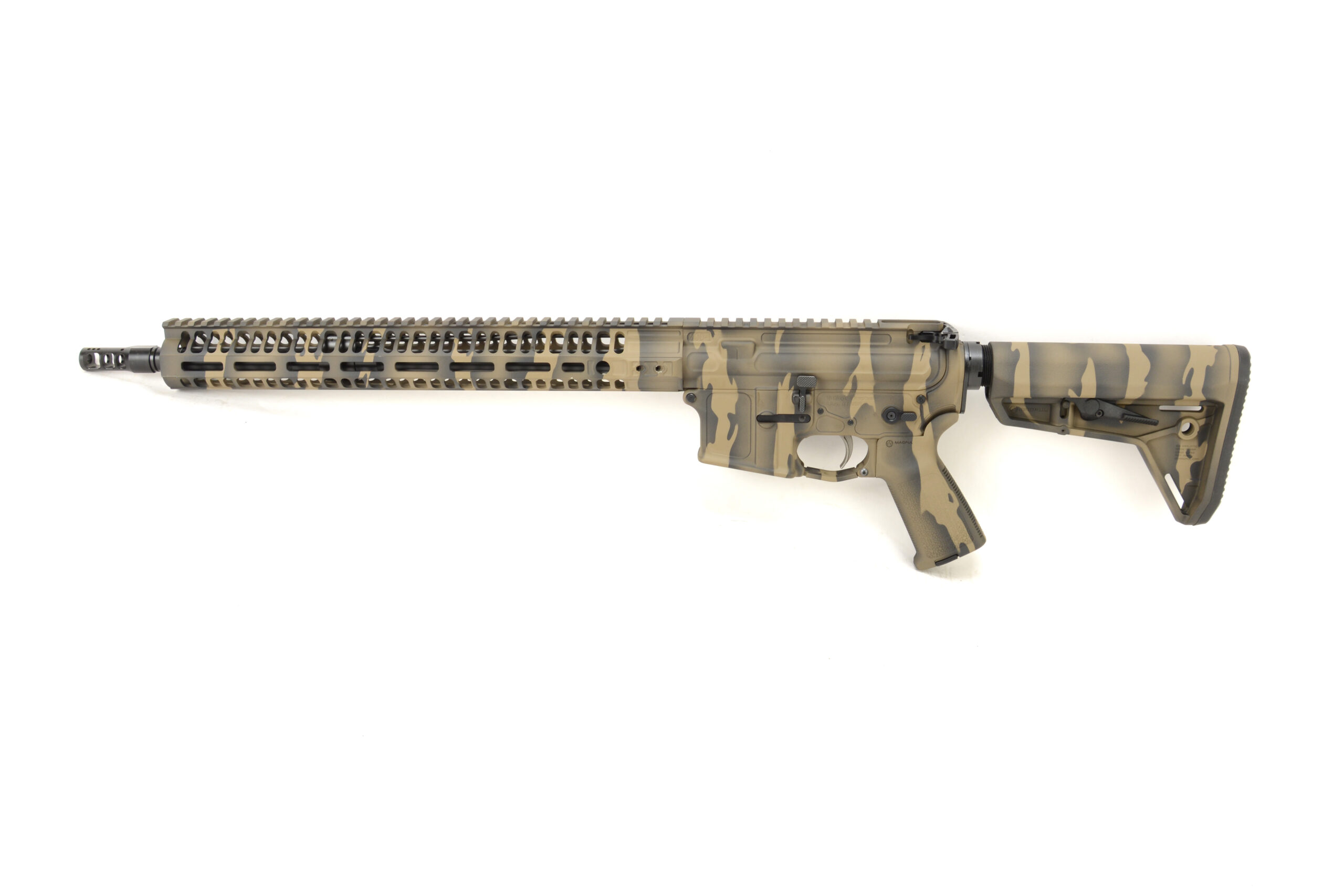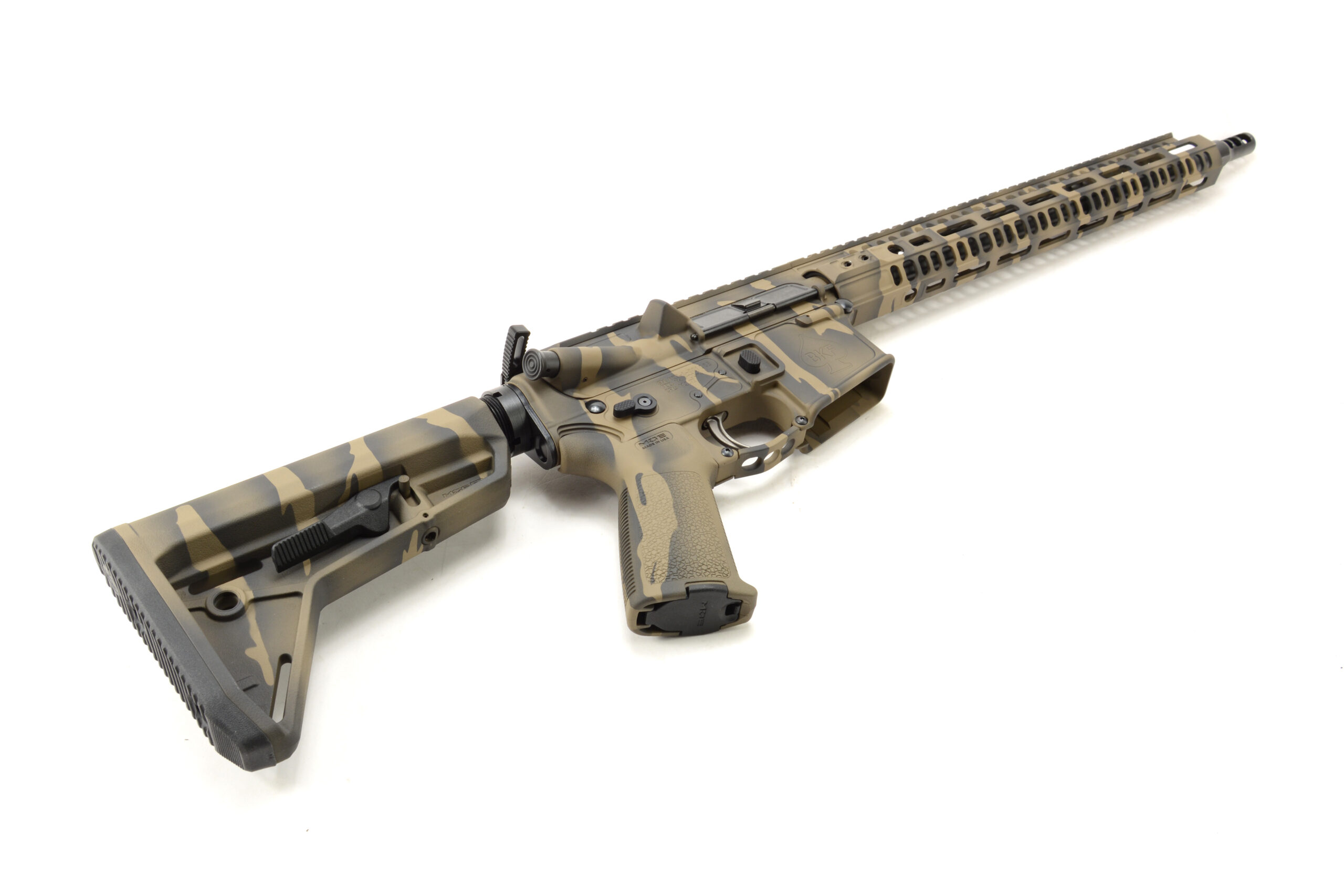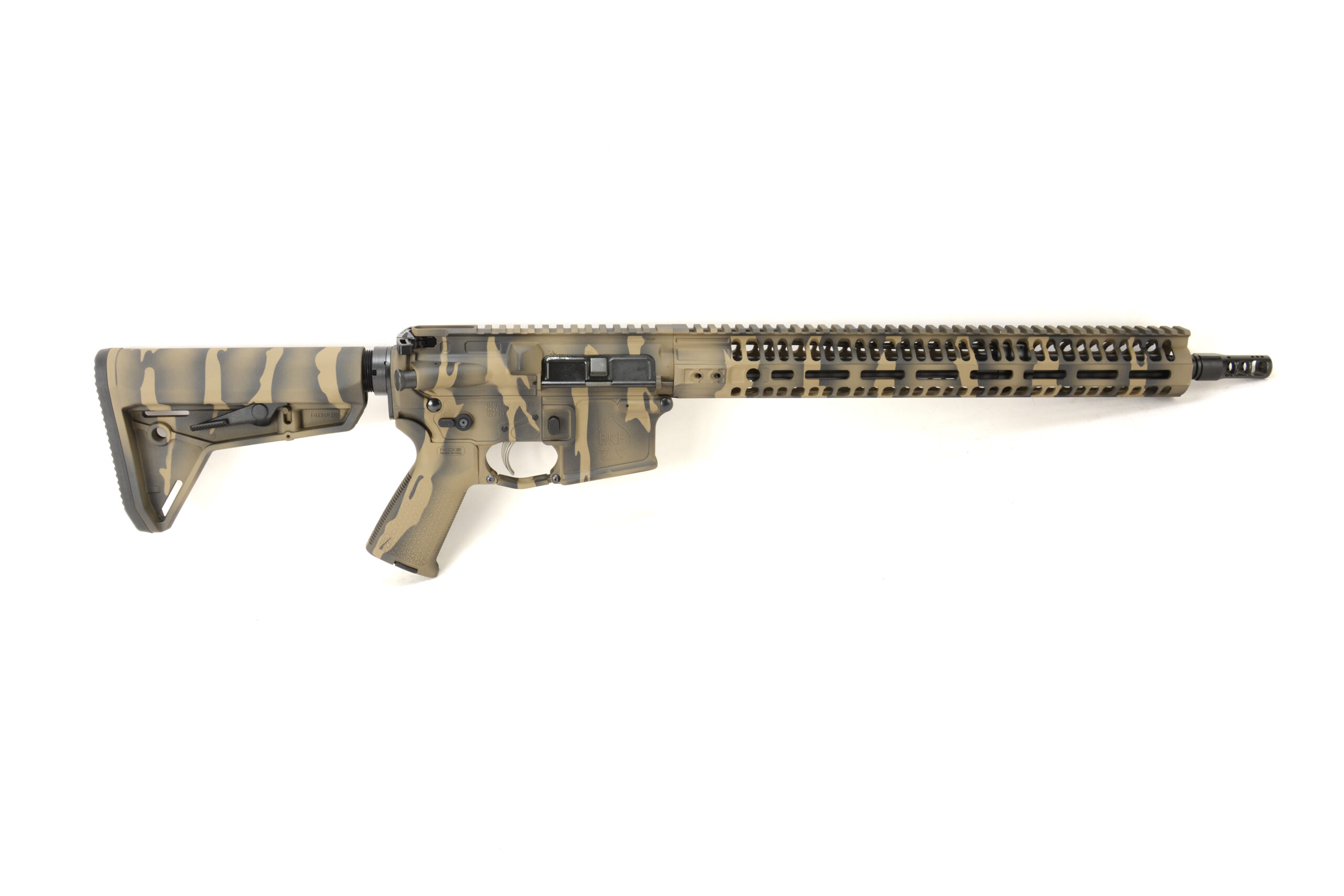 - BKF M4 Mod-1 Receiver Set W/ 15″ MOD rail Cerakoted in FDE Tiger Stripe