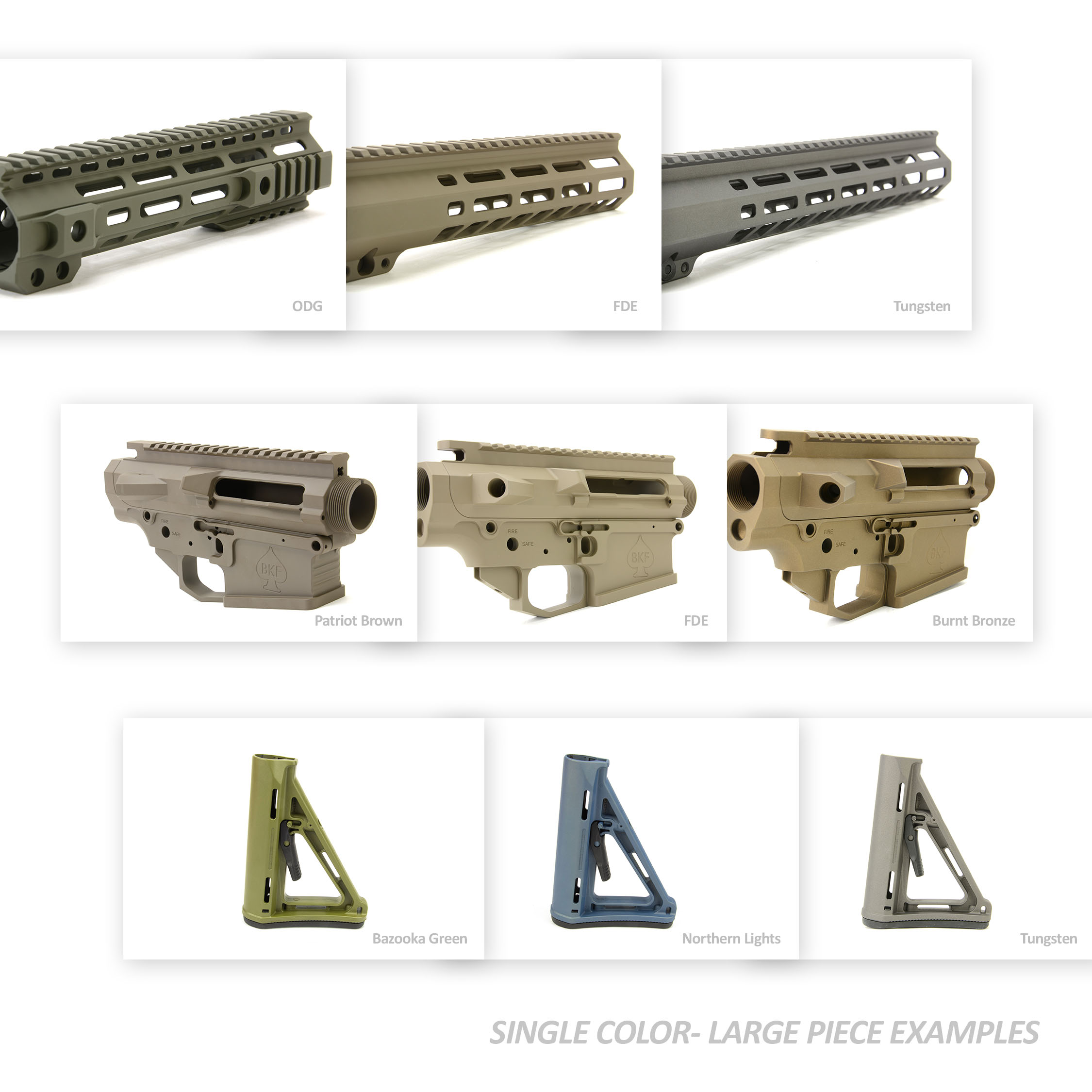 Bkings did not have an Aero Precision R-One handguard to match my ODG receiver set, but agreed to cerakote one if I sent one to them. Bkings ensured the handguard matched the receiver set perfectly and I would highly recommended their services.