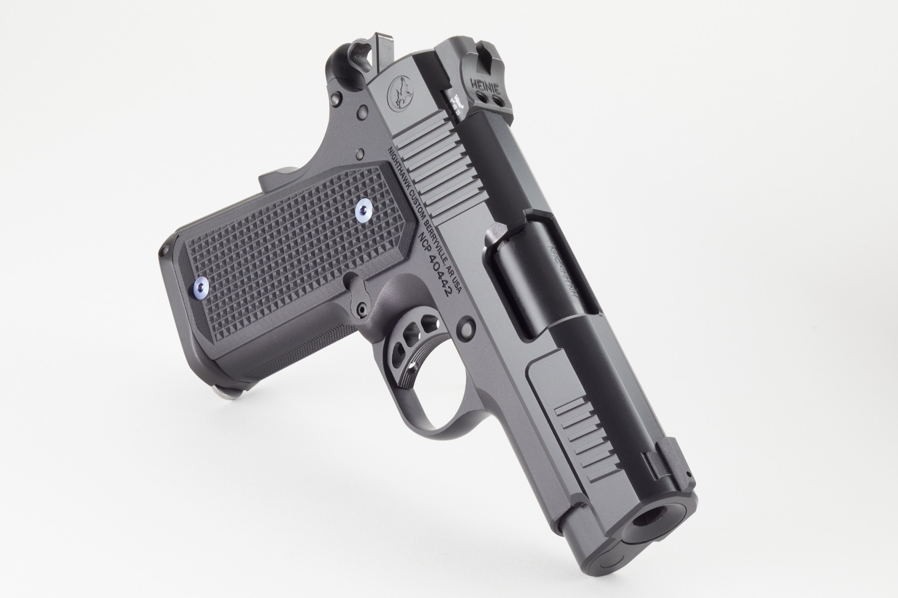 The Nighthawk Custom Counselor is the original member of the Ambassador Series, showcasing a blend of innovative design and practical features tailored for concealed carry. This 9mm Officer Model boasts a 3.5-inch match-grade barrel and is built on a lightweight aluminum frame for ease of carry without sacrificing durability. Both the aluminum mainspring housing and grip safety contribute to its lightweight construction.