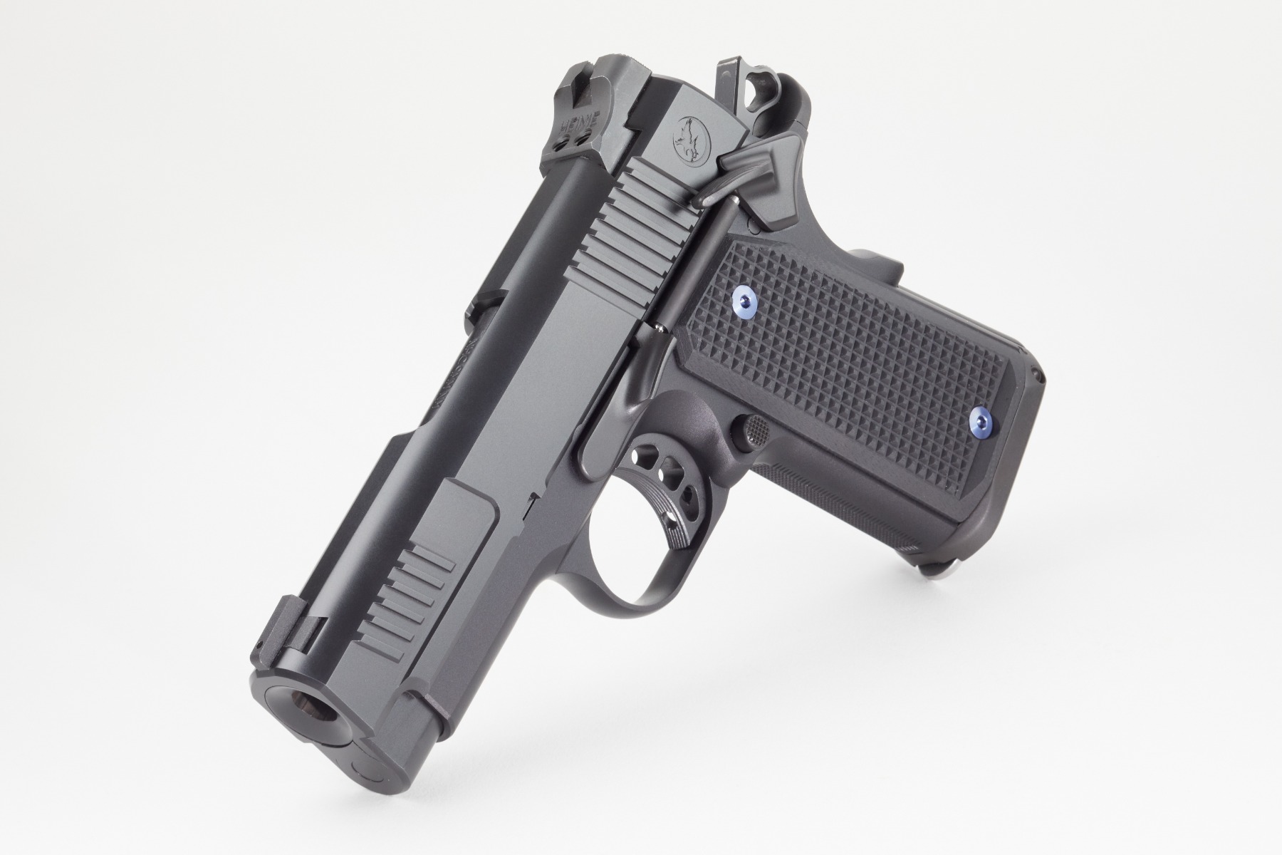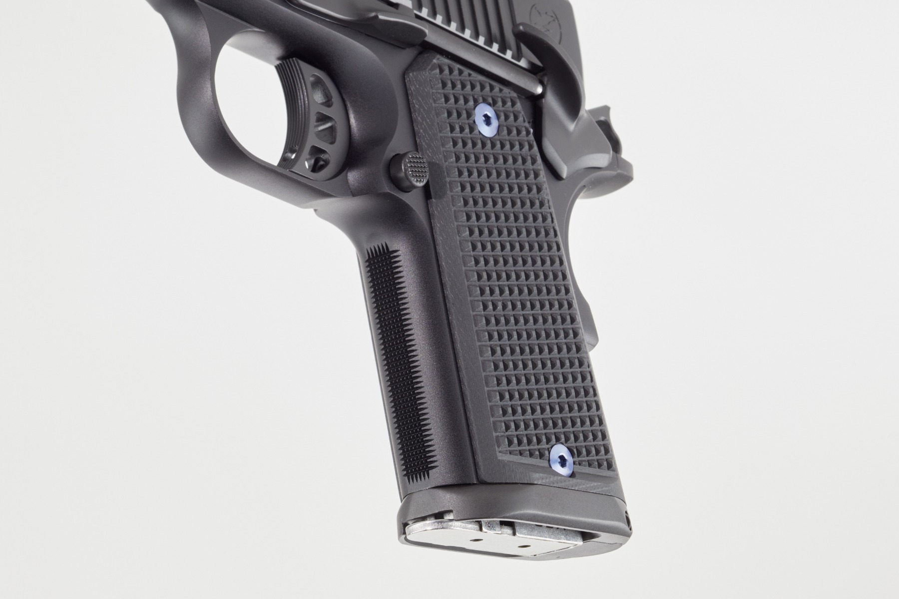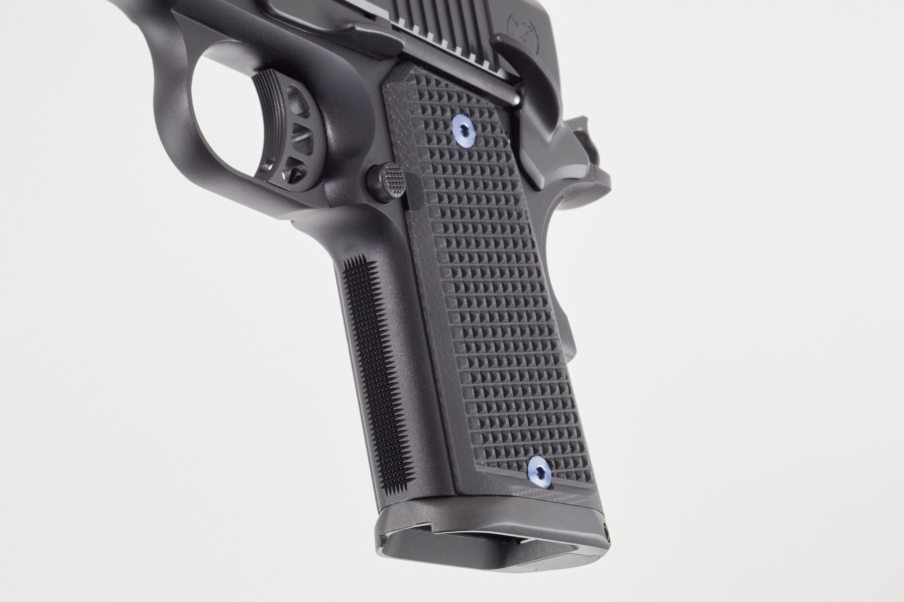 Additionally, the Counselor includes an ultra-high, undercut trigger guard, accommodating most full-size hands on the grip for optimal control. The pistol’s G10 scales, custom-engineered with Railscales, are thinner than any other 1911 grips on the market, providing a comfortable and secure grip.