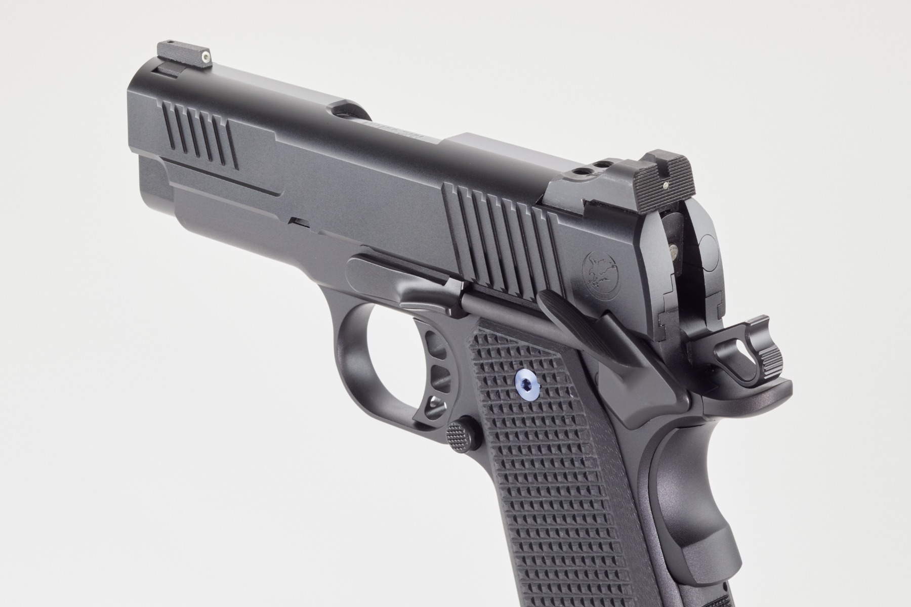 The Counselor features a new bobbed-concealment beavertail and hammer, specifically designed for a lower profile to aid in concealed carry. With an 8+1 capacity, this 1911 pistol offers ample firepower in a compact frame. The model’s slide introduces a brand-new design, diverging from the traditional approach of using “negative” serrations. Instead, the Counselor employs “positive” serrations up front, which protrude from the slide, offering shooters a unique look and an excellent grip for press-checking.